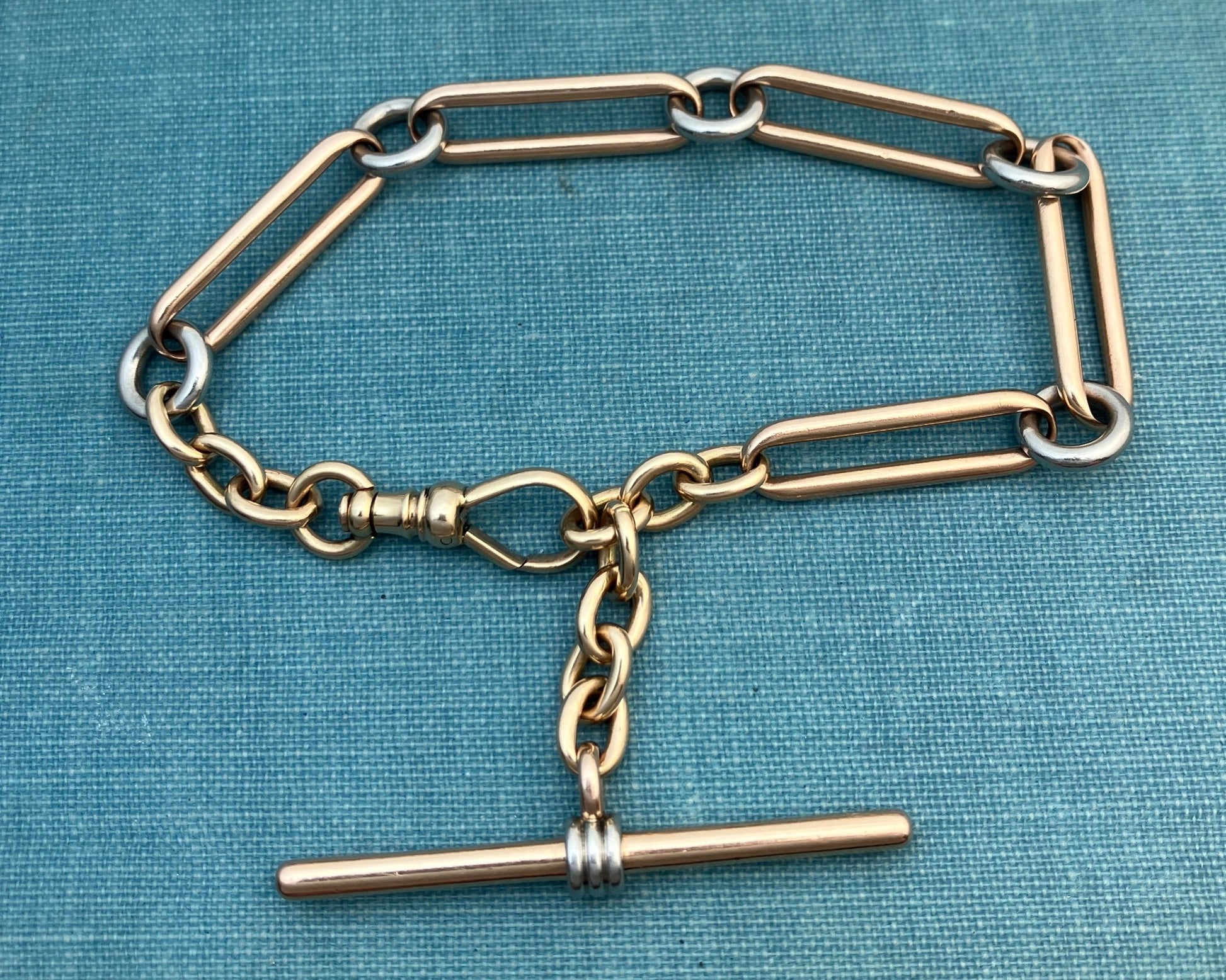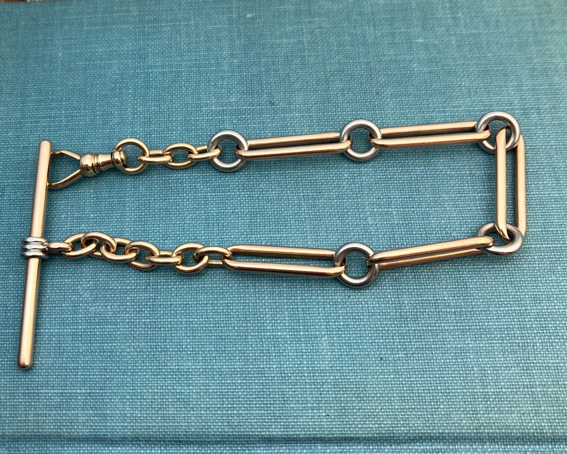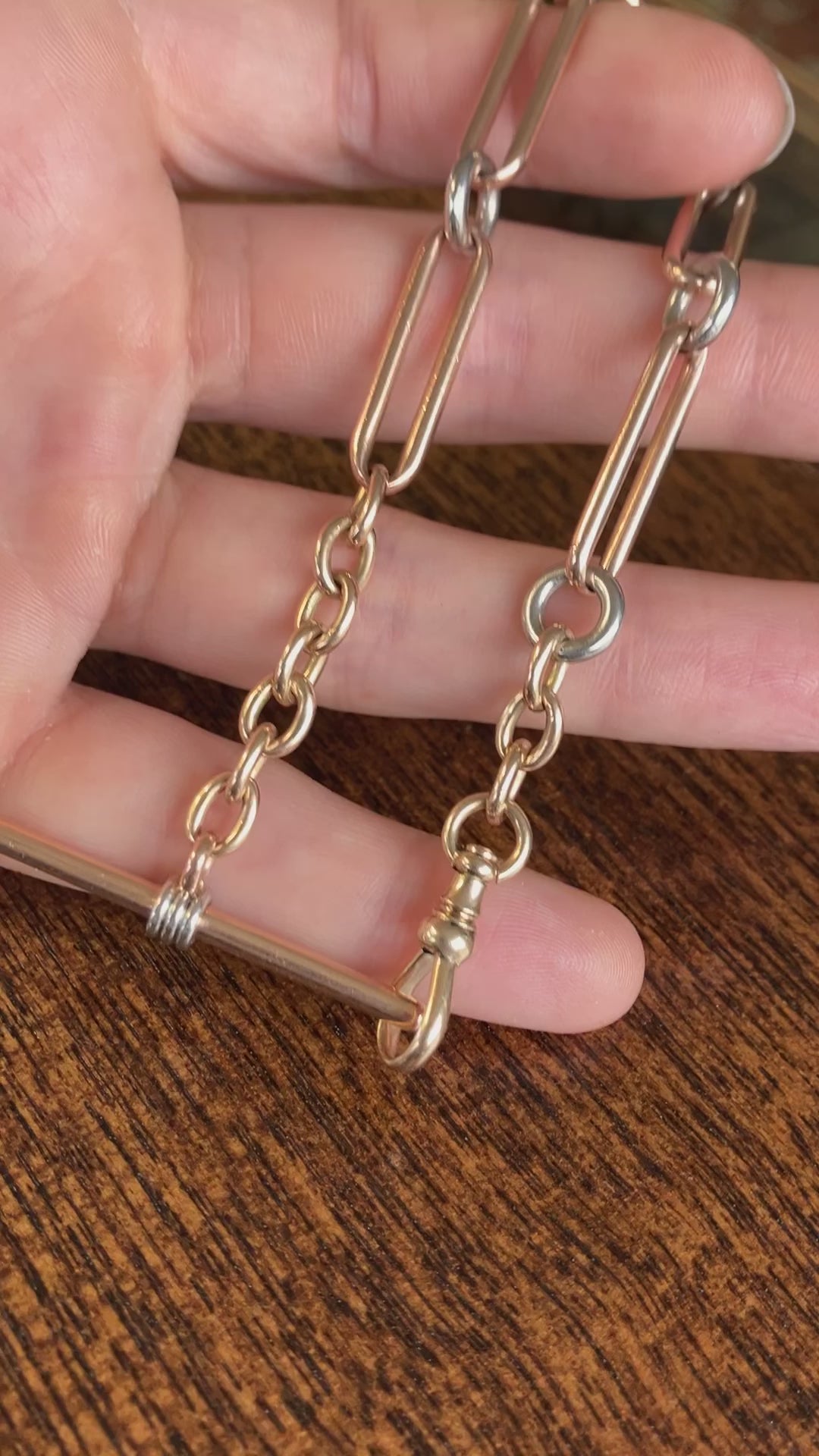 Trombone link 8.5 inch watch chain can be worn as 7-7.5 inches.